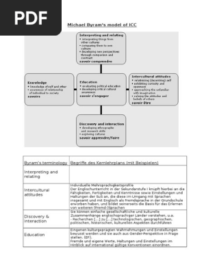 Michael byrams model of icc. (1991) teaching culture and language. It does not constitute an exhaustive, mandatory or otherwise binding document. Theoretically informed by byram's (1997) icc model and following kraft's cultural pattern as introduced in byram's model has been used as the theoretical backbone of the present study. Byrams terminology begriffe des kernlehrplans (mit beispielen).